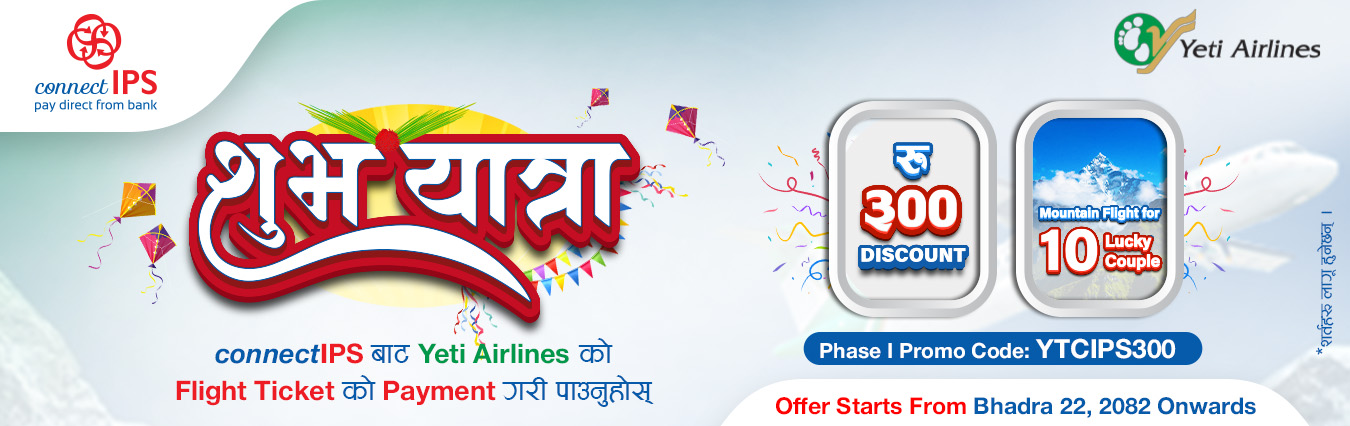 - This offer is only valid for online payment of Yeti Airlines flight ticket via connectIPS as a payment